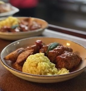 Σουτζουκάκια με πικάντικη σάλτσα.